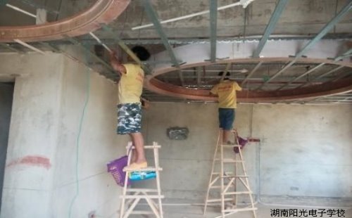 1,个别人觉得到施工队去学水电技术,全部都是实践,应该效果会很好。其实是大错特错!从表面上看 ,在施工队好像实践的机会很多,但是,在施工队中的所有师傅的主要工作是施工,不是教学,所以他不可能用心来教你技术(因为你耗掉了他的时间)。再加上施工队的师傅大多数是文化底子不厚,本身就是跟师傅学出来的,不是科班出身,即使他肚子里有东西,他也不一定能完整表达出来,让学员弄明白。他们一般只知其然,说不出其所以然,这样就教不好学员,学员也只能学些皮毛,核心技术你根本不可能学到(因为师傅水平有限、也根本不识施工图,只能照葫芦画瓢)。湖南阳光电子学校的老师都是科班出身,从事水电教学、施工工作多年,有丰富的教学和实战经验,懂设计、懂施工,更重要的是懂怎样教学,知道怎样让学员弄懂学会,有完善的教学方法和系统的教案,能够由浅入深、稳打稳扎教会学员。我们经常会看到在一些中学里,有些老师教的学生90%以上可以考取本科,而有些老师带的班只有个别学生能考取本科,这是为什么呢?原因就是:老师对学生的学习效果起决定作用!